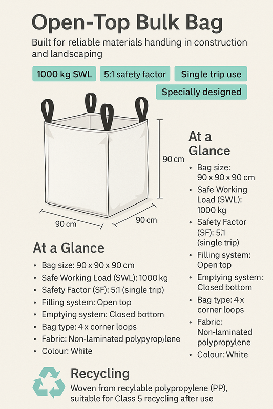 1.0 Tonne - Open Top Closed Bottom - Bulk Bag - 90 x 90 x 100 CM