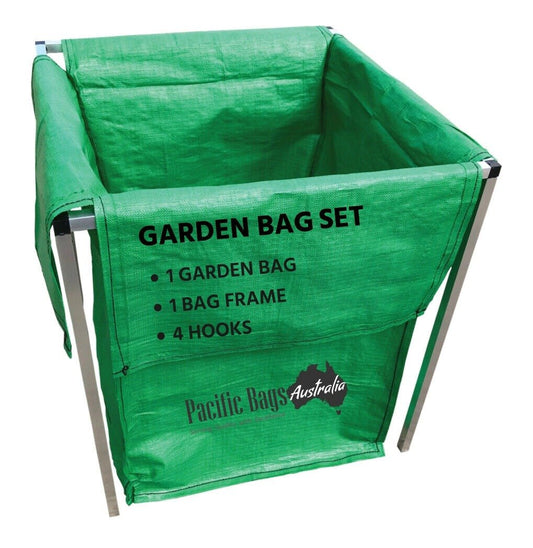 HDPE Garden Bag Full Set - 1 Aluminium Frame + 1 Garden Bag + 4 Hooks