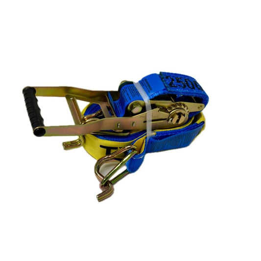 Ratchet Tie Down - 6m x 35mm - Double J Hook - LC 1500kg - BLUE
