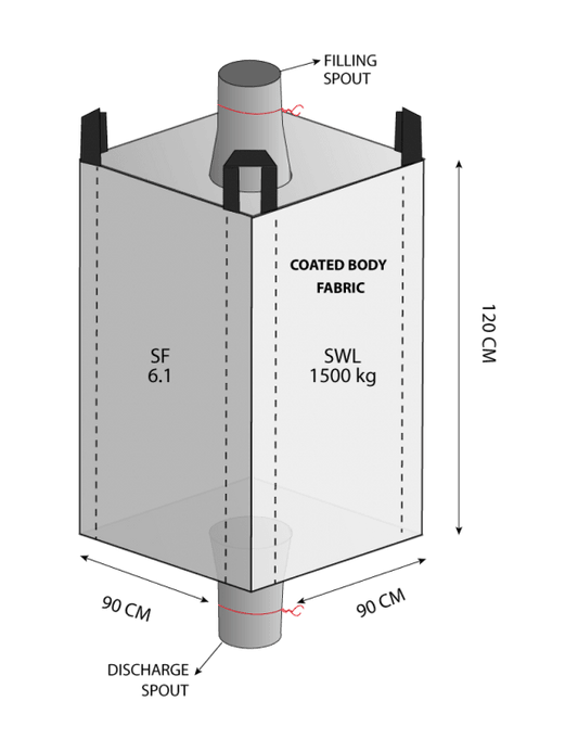 1.5 Tonne - Spout Top Spout Bottom - Bulk Bag - 90 x 90 x 120 cm