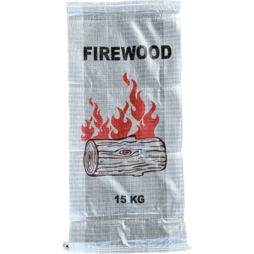 15kg Printed Firewood Bag – Transparent Woven Polypropylene with Gusset