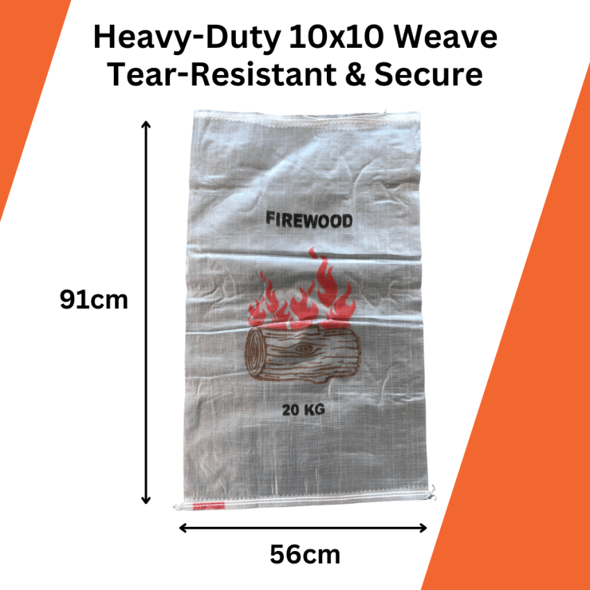 These woven polypropylene firewood bags are designed for packing and showcasing firewood. Made from durable, transparent fabric, they are strong, resistant, and UV treated for outdoor storage and transport.