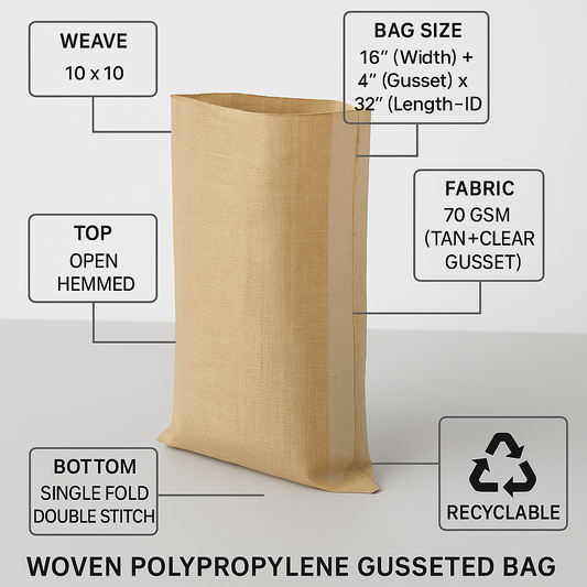 Woven Polypropylene - Gusseted Bag - (43 CM + 13 CM) x 96 CM